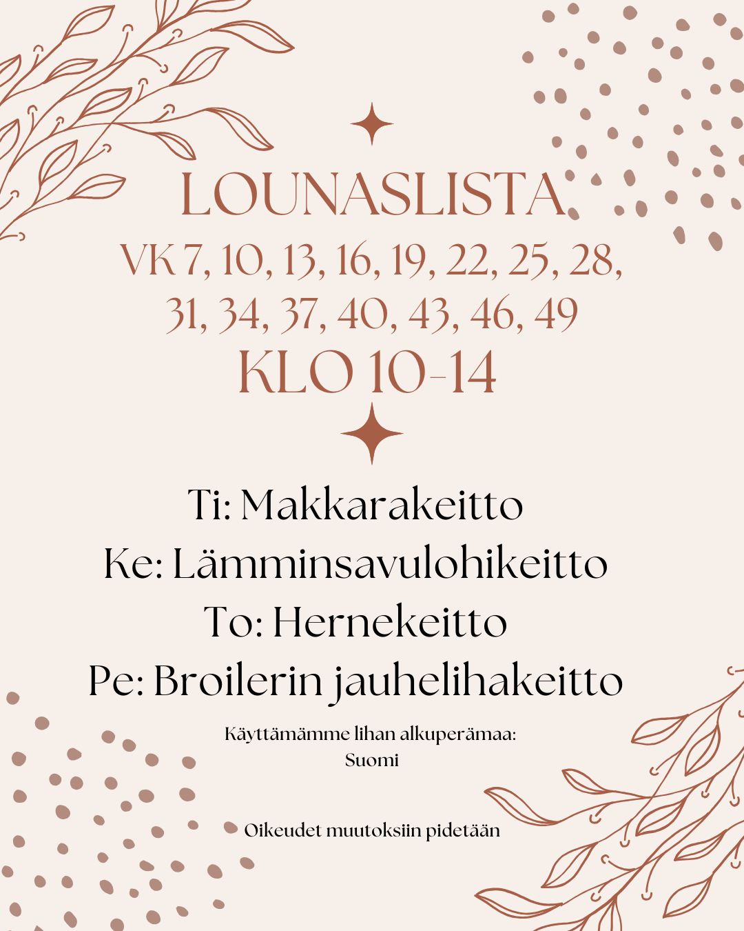 Tilauksesta valmistamme tarjottavat juhliisi, kokouksiin ynnä muihin tilaisuuksiin.